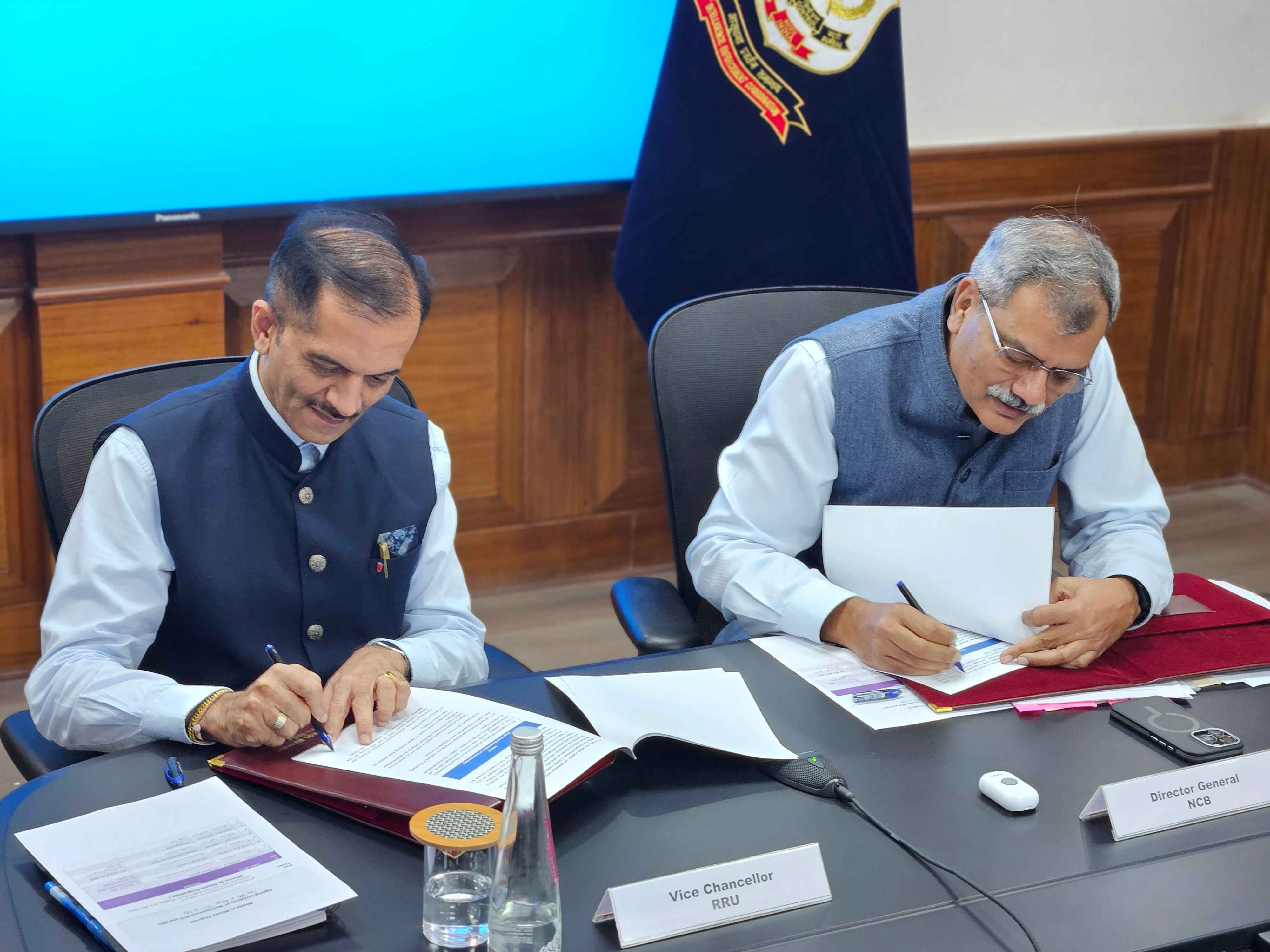 The Narcotics Control Bureau (NCB) and the Rashtriya Raksha University (RRU), an Institution of National Importance under the Ministry of Home Affairs signed a Memorandum of Understanding (MoU) to enhance cooperation in the areas of research, training, technology development, and capacity building related to narcotics control and cyber-enabled drug crimes. The MoU was signed by Shri Anurag Garg, IPS, Director General, NCB, and Prof. (Dr.) Bimal N. Patel, Vice Chancellor, RRU at a function in New Delhi